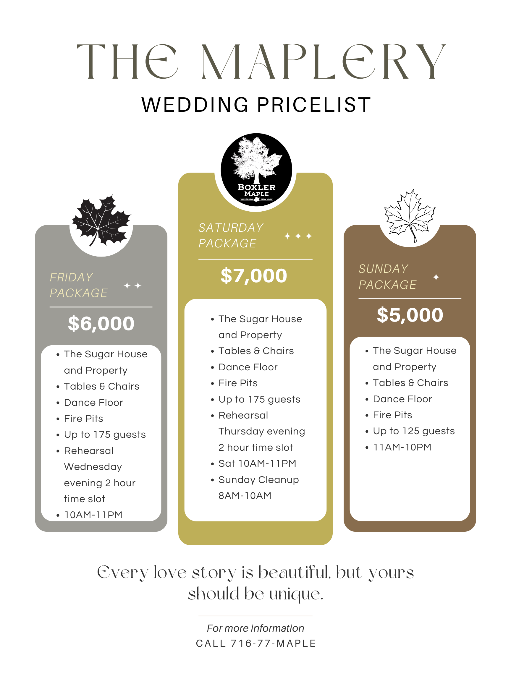 Available May through December, The Maplery highlights the beauty of each season—from vibrant spring days and warm summer evenings to crisp fall air and cozy late-season gatherings. With picturesque views, a welcoming atmosphere, and a blend of rustic charm and simple elegance, The Maplery is a memorable place to bring people together.